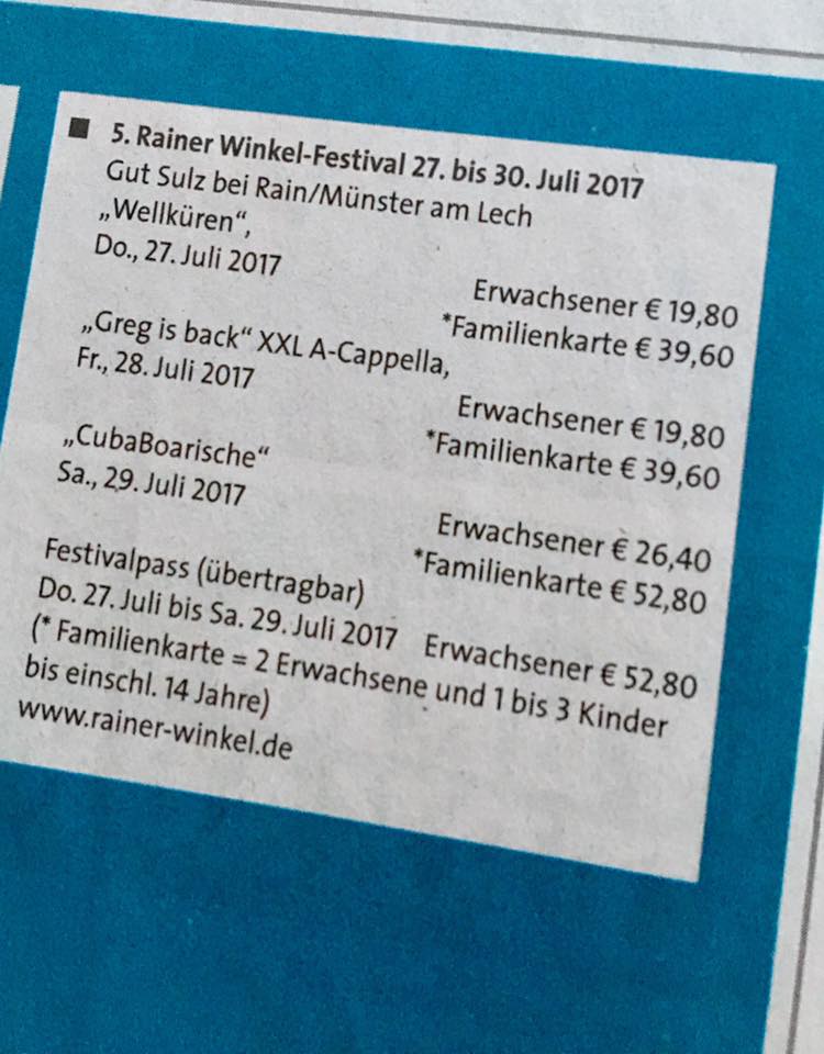 Vorheriges BildNächstes Bild #rainer_winkel #OpenAir2017 Preise Die VVK Preise fürs 5. Rainer Winkel Festival #GutSulz2017