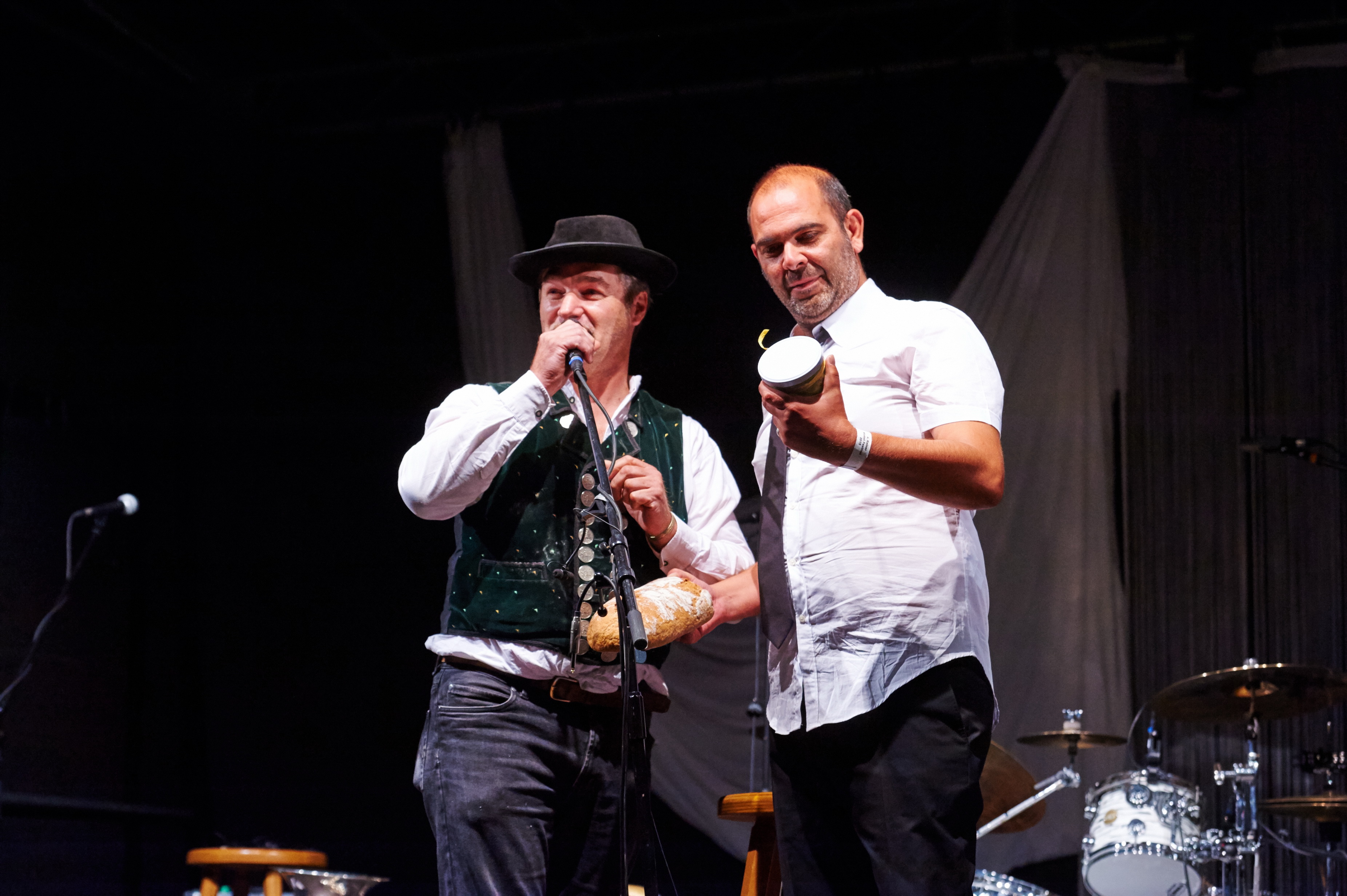 Vorheriges BildNächstes Bild 413 Zweimal Hannes „Hemert-Lenz“, links Hannes Geier, rechts Hannes Ringlstetter auf dem 4.Rainer Winkel-Festival 2015 (Foto Nitsche)